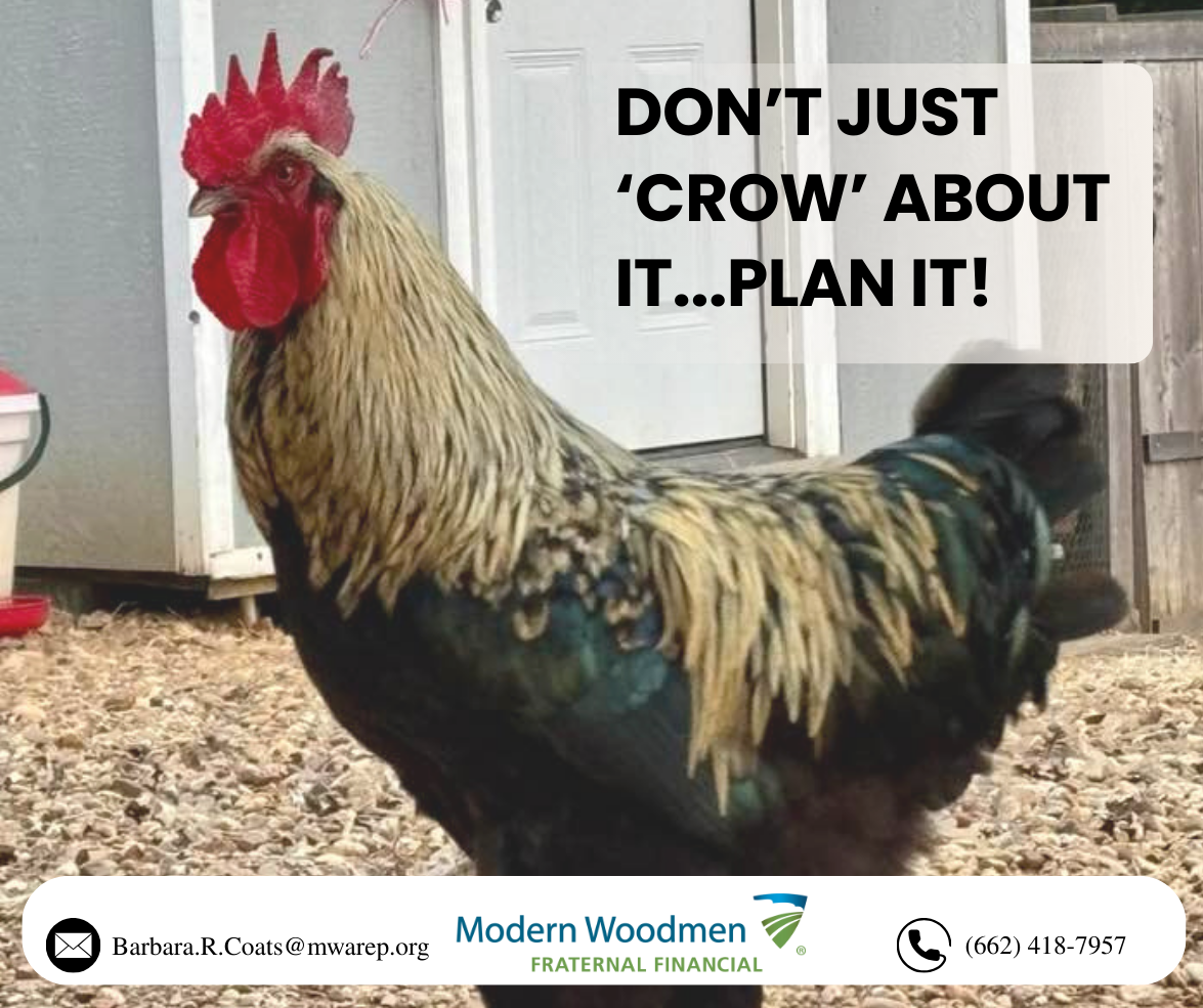 🐓 It’s one thing to strut around talking about your goals… it’s another to lay the groundwork and start planning. Don’t just crow about the future. Let’s get your financial coop in order. Small, intentional steps can lead to a nest egg you’ll be proud of. 🥚 Ready to hatch a plan? Let’s talk. #FeatherYourNest #NoMoreScrambling #ModernWoodmen #ChickenMomWisdom #CluckYeahPlanning #PlanWithPurpose #NestEggGoals