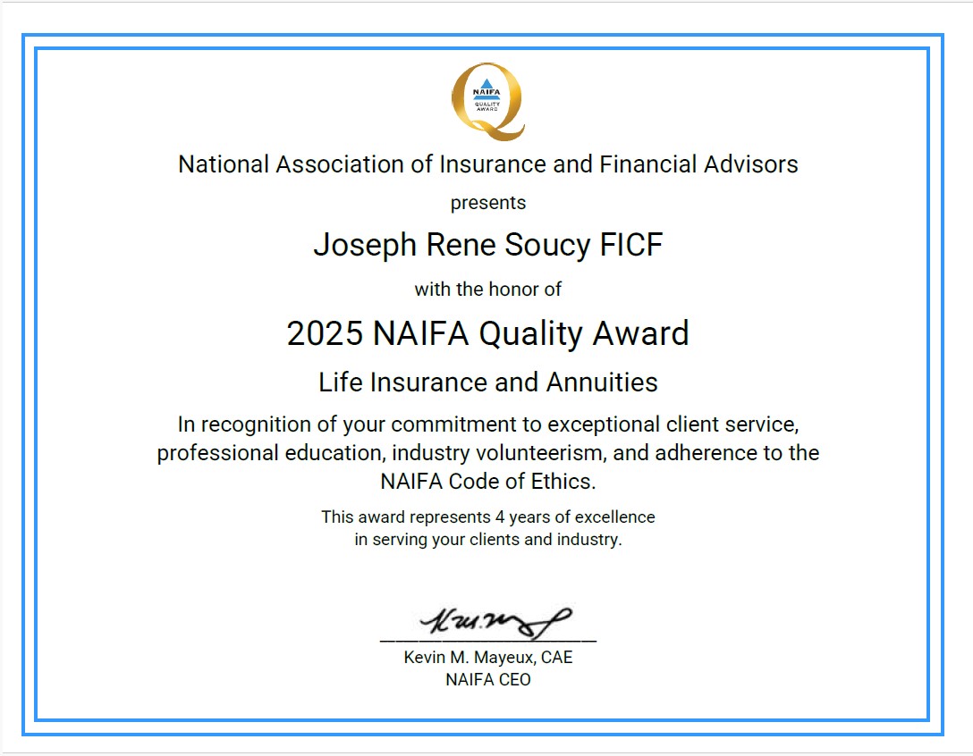 I am happy to announce that I have received the NAIFA quality award for the past four years.